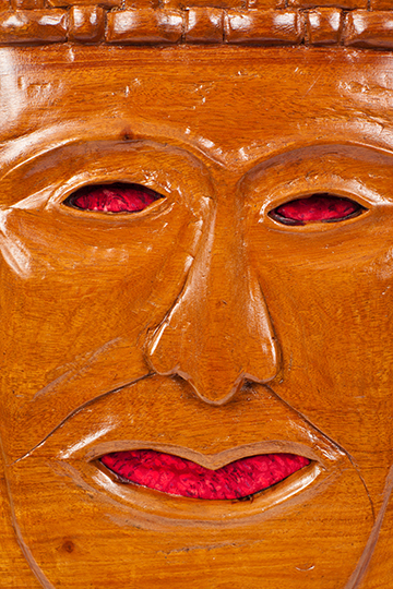 I chose to create my mask using Honduras Mahogany. I felt that the lumber from this tree reminded me of my home and my childhood. Descendants of the Maya Indians have surrounded me throughout my life. The wear and tear of their faces reflects times of hardship and joy. Perhaps, I could capture this in a carved piece. On a trip to Tela, Honduras in March of 2014, my mentor, Jose Santos Reyes Palma, known as “el Sarco” (because of his rare green eyes) proved to be an invaluable teacher. While working in the carpenter shop, he patiently guided my progress. I used a ban saw, planes, router, and carving tools that took me back in time to my childhood in my father’s workshop in La Cieba Honduras. Sanding and varnishing, the two final steps brought my mask near completion. Carving wood is normally a man’s work. Breaking this mold has been my woman’s journey in time. I feel grateful to the many people who guided me in the creation of this mask. |