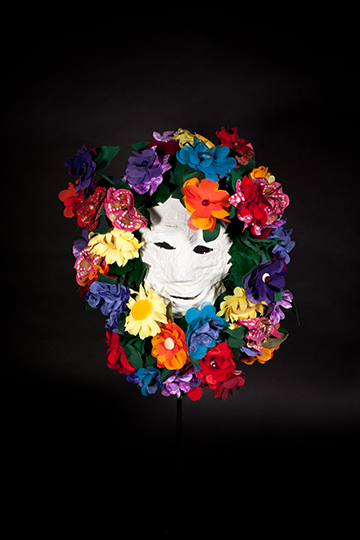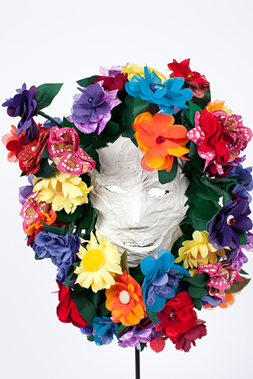 Isn't it wonderful -- here I am again with another bunch of flowers. I consider flowers appropriate everywhere, even on a mask. A mask is something that one can/might hide behind. Sometimes, I wish I could hide behind a mask, doesn't everyone at one time or another? What is more beautiful than a bouquet of flowers? Too bad these are not real; besides looking lovely they could smell lovely. The energy and creativity of this project inspire me to consider creating more masks. Why? • Don't want the world to see me today |