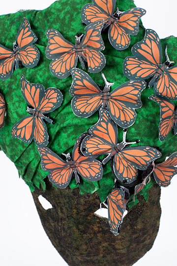 Yes, I am a tree hugger. My mask symbolizes the plight of the monarch butterfly. The loss of this beautiful species is symbolic of what is happening to our planet. Clear cutting, elimination of natural habitats, and global warming are all symptoms of a sick planet. Working on this project not only gave me an opportunity to experiment with the challenge of new materials, but also allowed me to really think about what I wanted my mask to represent. If we don’t act now, there may be no planet Earth for future generations. Don’t all of our children and grandchildren deserve fresh air and fresh water? Each of us, in our small way, can make a difference. What can you do to help? |