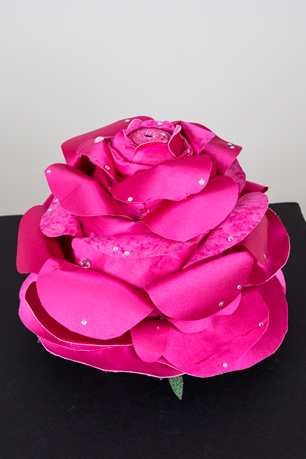 Boxes: The variety is endless - packing boxes, shoe boxes, treasure boxes, take out boxes, mail boxes, hat boxes, flower boxes, and many more. Thinking about these endless possibilities, flower boxes caught my imagination. A window flower box, or a box covered with flowers or a flower that is a box? A flower that is a box was the answer! Which flower? A rose, of course! Why? To honor Rose, a dear friend and an inspiration! At 93 always a willing participant in many adventures; she was interested and interesting. Curiosity kept her young. We shared a love of sewing, innovations using new sewing and embroidery machines, and puzzled about technique and patterns. So for her this flower box is a ROSE! The base is constructed from clothesline wrapped with fabric and stitched into two bowl shapes. The petals are stiffened with stabilizers and glued or stitched to the top and bottom bowl shapes which create the “flower box”. |