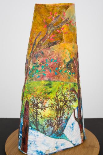 Joni Mitchell’s Carousel of Time relates a child’s journey to adulthood. My carousel references seasons. Both tell the story of passing time and natural transitions. Winter shows snowy lands, a lone goose wandering. Joni Mitchell’s young boy enjoys his youth, “Yesterday a child came out to wonder, Caught a dragonfly inside a jar”. In Spring buds appear on trees and flowers. Mitchell’s child at 10 sees “…promises of someday”. Summer brings new life, trees full, flowers blooming. At 16, Fall gives us the last colors of the year in brilliant red and gold leaves. Leaves fall and flowers die, but there are hopes for his future. At age 20, “Though his dreams have lost some grandeur… There’ll be new dreams, maybe better dreams and plenty”. “the seasons they go round and round… We can’t return we can only look behind from where we came…” |